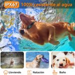 El collar tiene certificación IP67, lo que significa que puede mojarse sin problema. Su correa es flexible pero resistente, y el diseño es cómodo para el perro.
